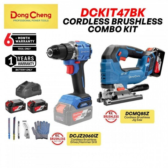 DongCheng DCKIT47BK Cordless Brushless Combo Kit DCMQ85Z Jig Saw + DCJZ2060iZ Driver/Hammer Drill 20V 4.0Ah